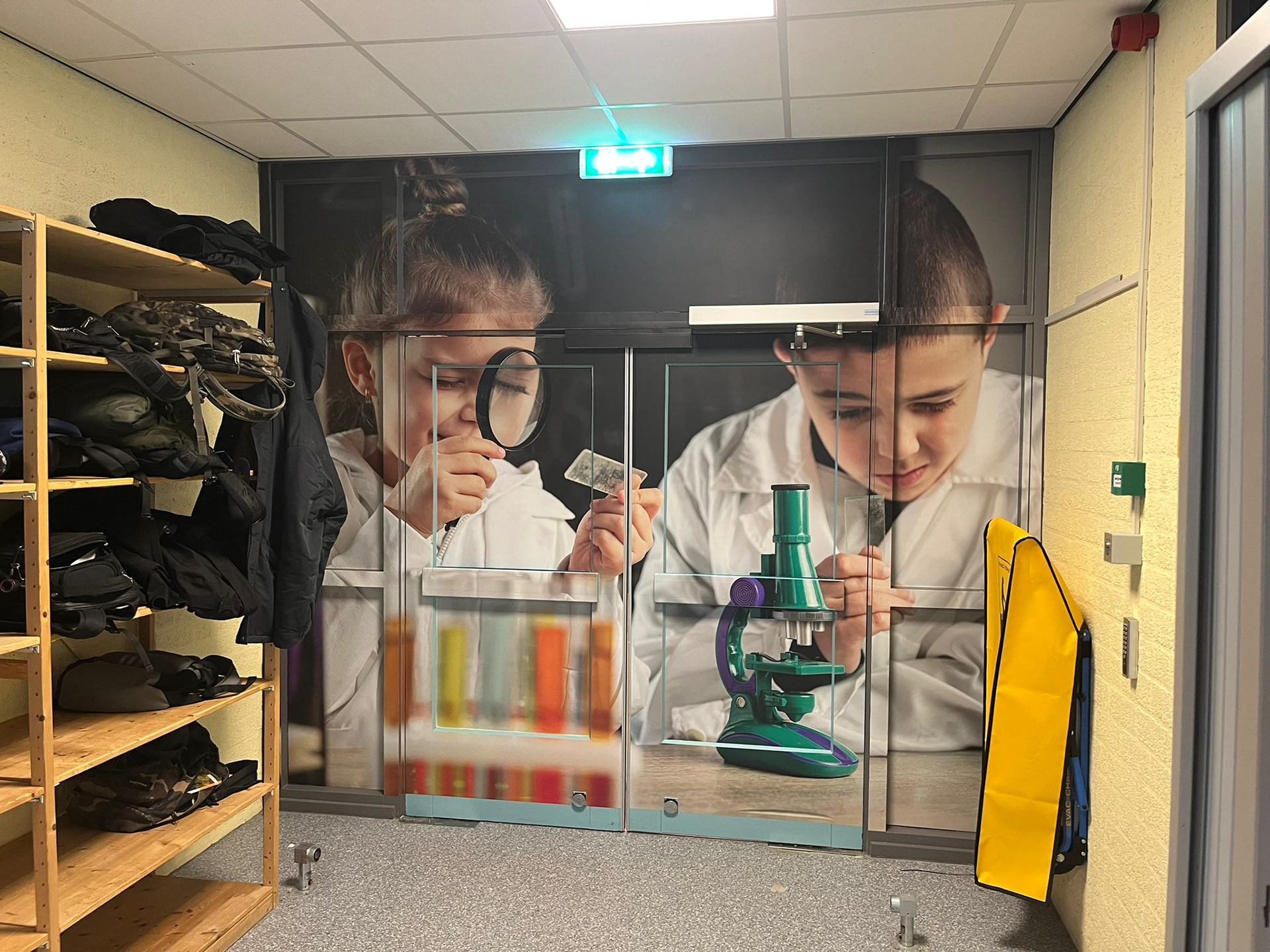 Tijdens mijn stage bij Interlinie kreeg ik de opdracht om verschillende ruimtes op een school visueel aantrekkelijker te maken. Sommige deuren waren niet bedoeld om doorheen te lopen, maar zagen er rommelig uit. De school wilde die graag afsluiten met een strak ontwerp. Ook waren er lokalen die saai en sfeerloos aanvoelden.